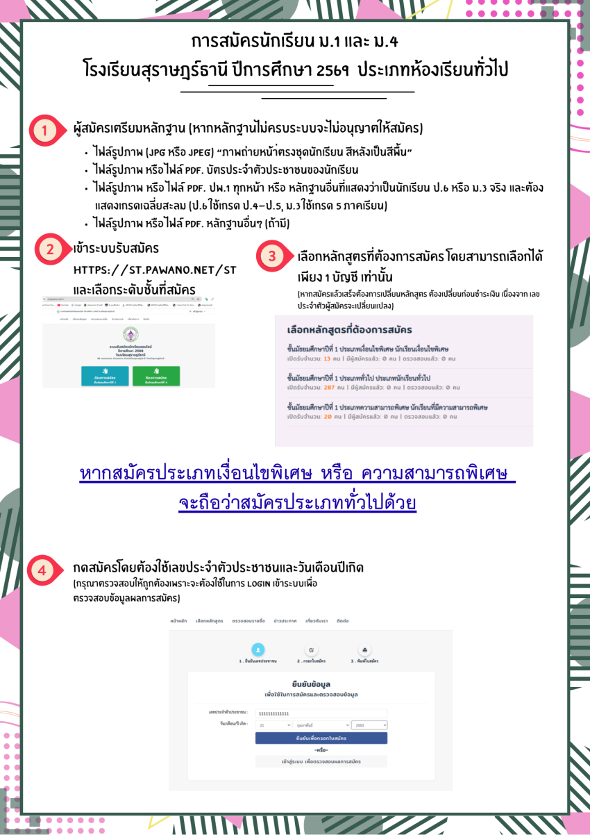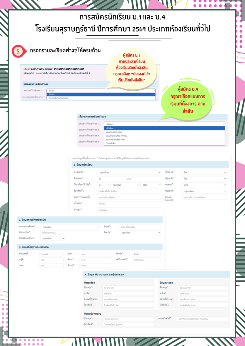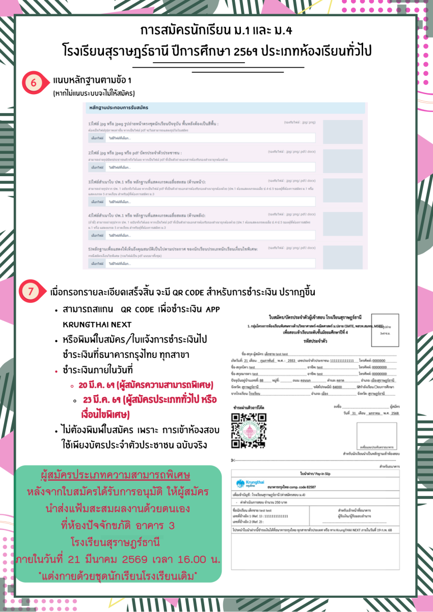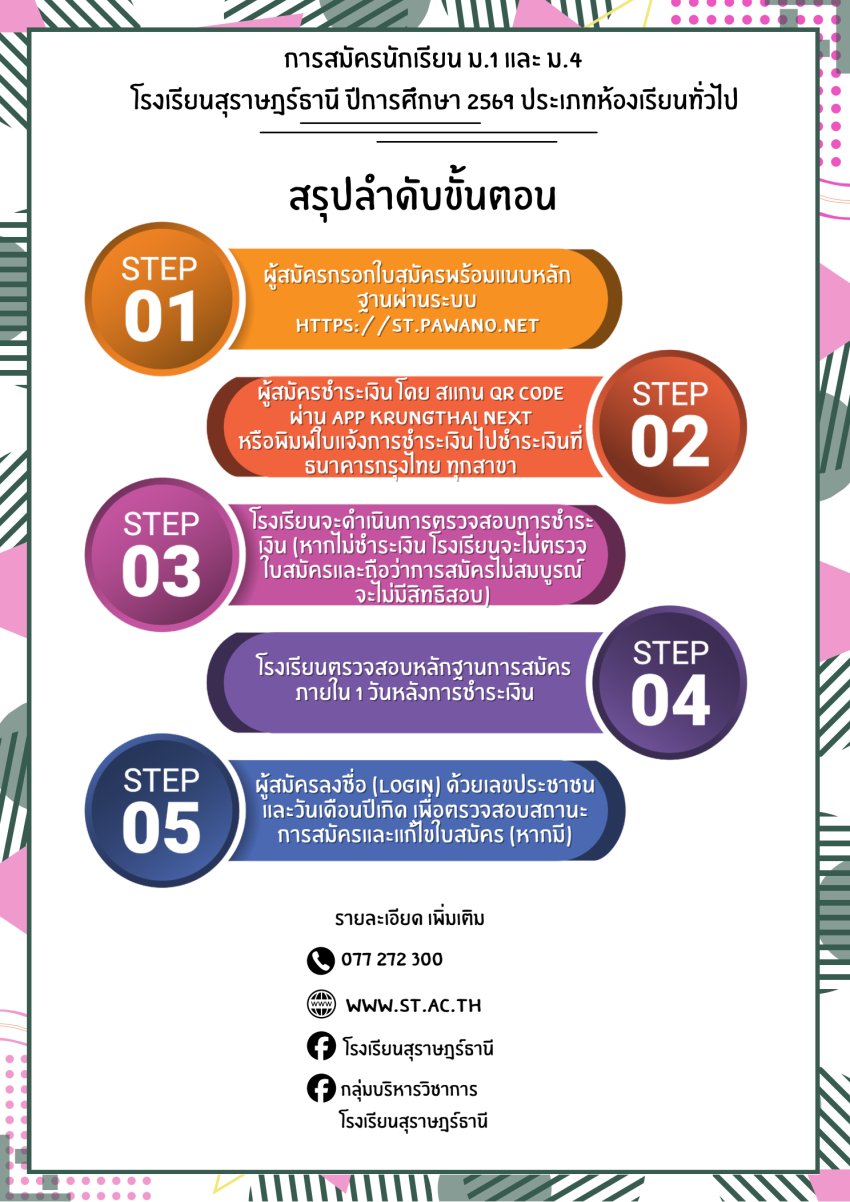 ระบบรับสมัครนักเรียนออนไลน์ ปีการศึกษา 2569 โรงเรียนสุราษฎร์ธานี